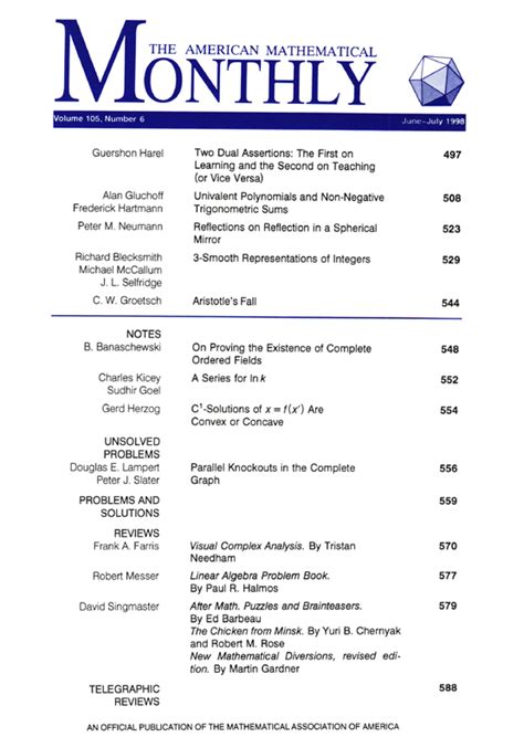 Read Online American Mathematical Monthly. Vol 105 Doc Library Genesis